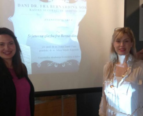 Na Danima dr. fra Bernardina Sokola, franjevca i glazbenika, voditeljica projekta dr. Ivana Tomić Ferić i suradnica dr. Jelica Valjalo Kaporelo sudjelovale su s izlaganjem o svjetovnoj glazbi dr. B. Sokola.